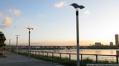 幾次到大稻埕來,發現真的不少高手,總是帶著單眼、腳架,四點半、五點左右就開始在等太陽下山,而我這次雖然沒有帶上腳架,但靠在欄杆上倒也是可以增加一些穩定度,但是拍著拍著也是會累手會酸,可見我還沒準備好拿更大台的單眼啊~XD