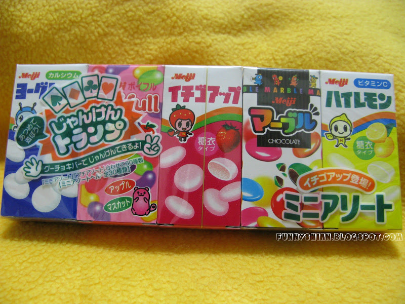 一開始先拿了兩桶杜老爺之後,很快的我就走到的糖果區,找一些奇奇怪怪的糖果。但是一般超市跟百貨公司的還是比不上,賣的東西都大同小異,沒什麼特別的,找了好久才讓我找到這個!明治綜合乳酸糖及綜合巧克力!